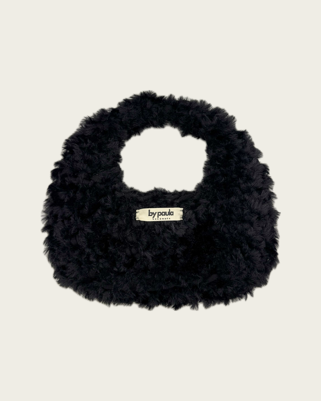 Die Häkeltasche MILA Cloud M in Noir ist ein elegantes Statement-Piece mit flauschiger Struktur und minimalistischer Silhouette.