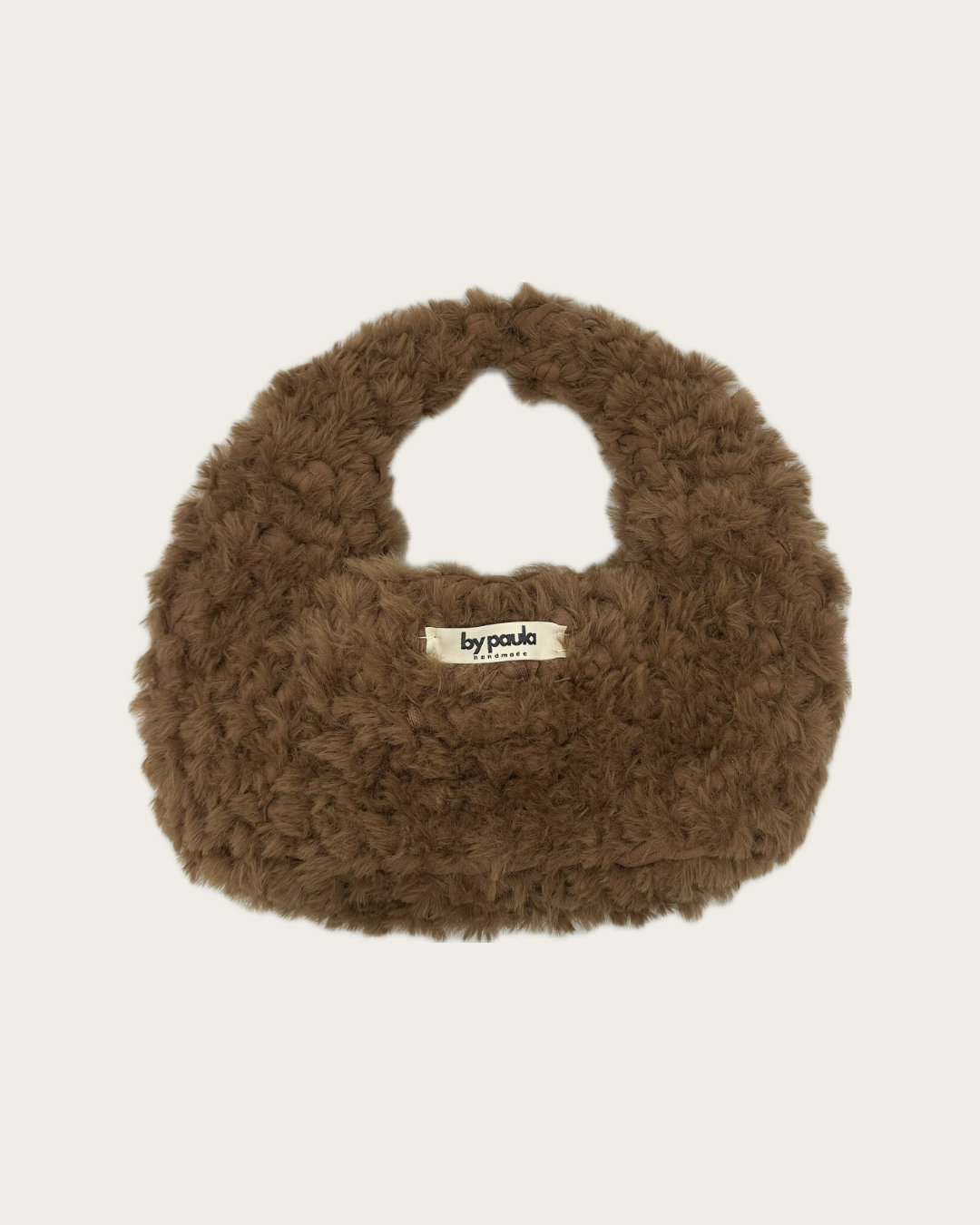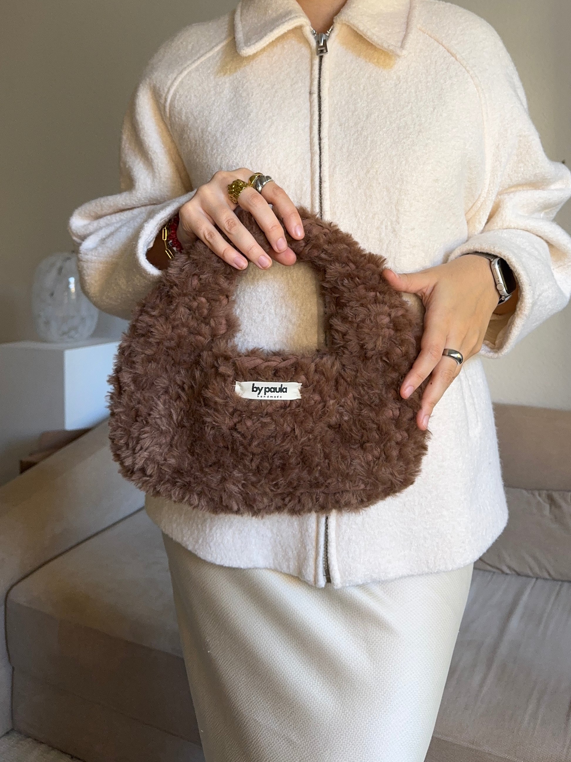 Die Häkeltasche MILA Cloud M in Nougat vereint Weichheit und Struktur in einem minimalistischen Design.