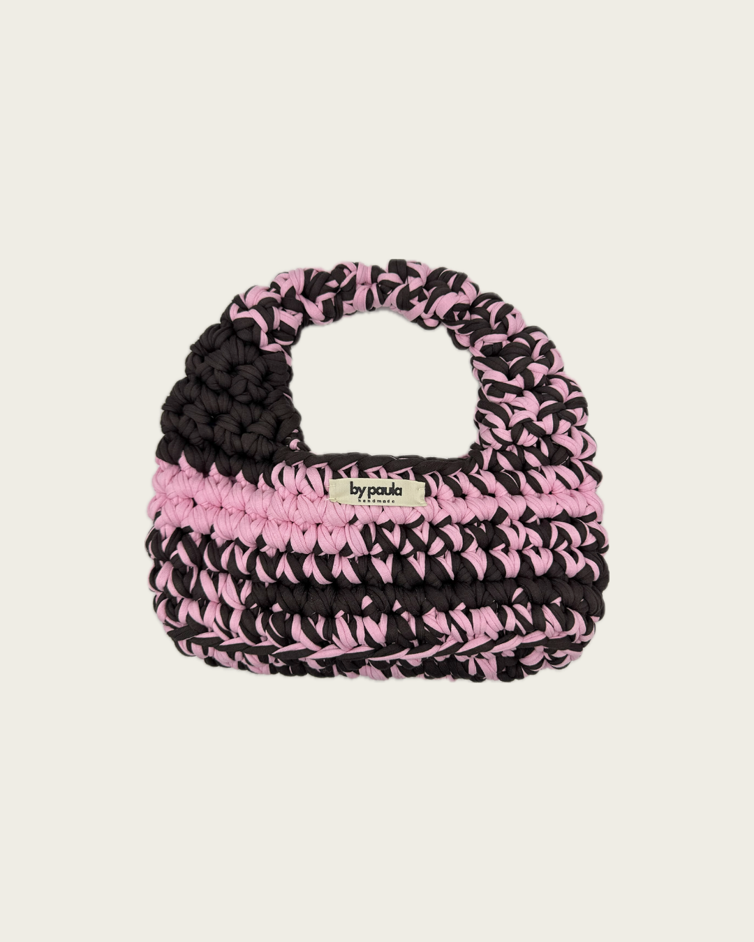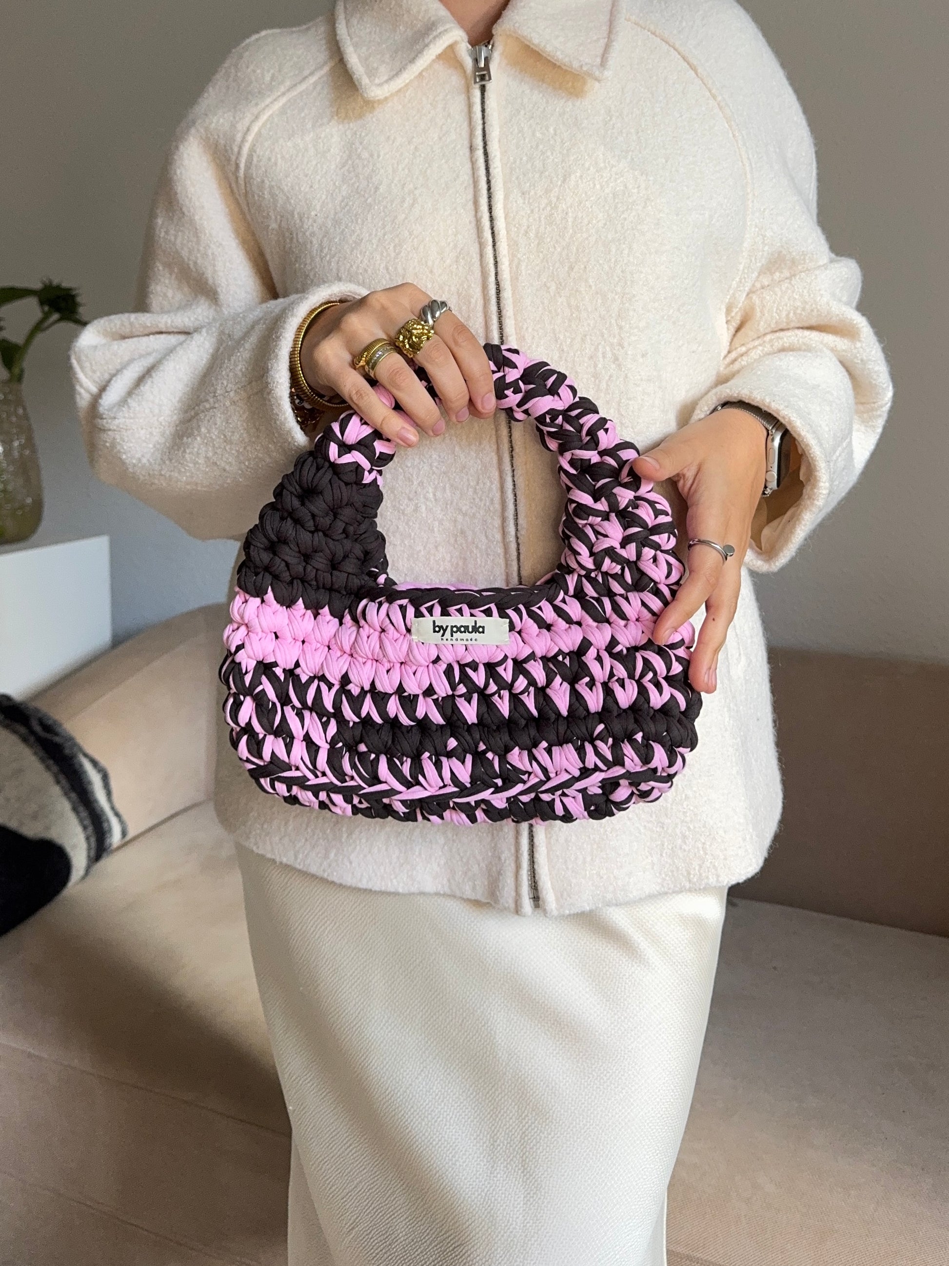 Rosa trifft auf tiefes Dunkelbraun – die Häkeltasche MILA Midi Berry Truffle vereint verspielte Leichtigkeit mit warmer Eleganz. Ein moderner Look, der feminin und zeitlos zugleich wirkt.