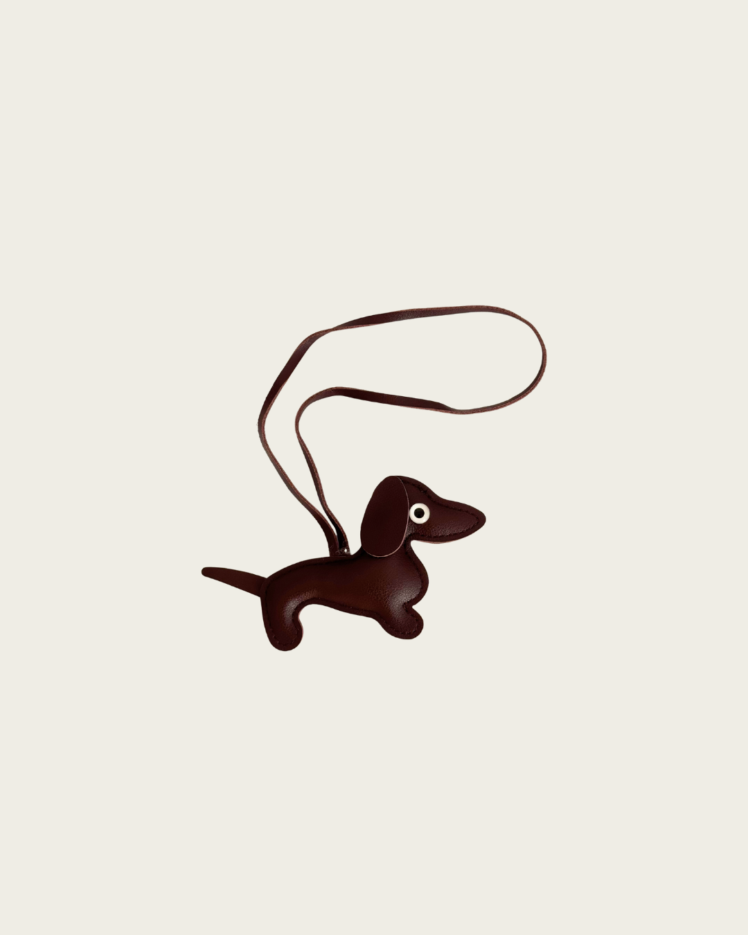 Ein stilvoller Schlüsselanhänger in Form eines Dackels aus dunkelbraunem Leder. Der kleine Hund ist ein elegantes Accessoire für Taschen oder Schlüssel und bringt eine charmante Note in deinen Alltag – schlicht, hochwertig und zeitlos zugleich.