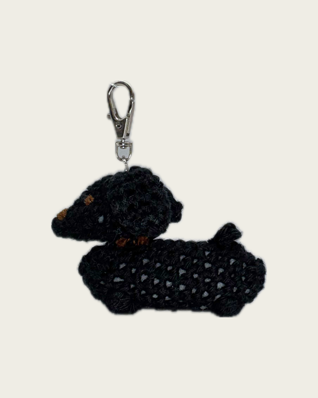 Klassisch und edel – der schwarze Dackel-Schlüsselanhänger ist das perfekte Accessoire für Tierliebhaber. Durch das feine, gehäkelte Design wirkt er besonders modern und eignet sich auch wunderbar als Geschenk für Hundefans oder Dackelfreunde.